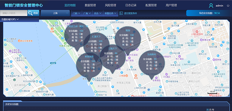 It supports the real-time display of the total number of intelligent terminals, the total number of online terminals, the number of offline terminals and the number of alarms. Supports display by region.