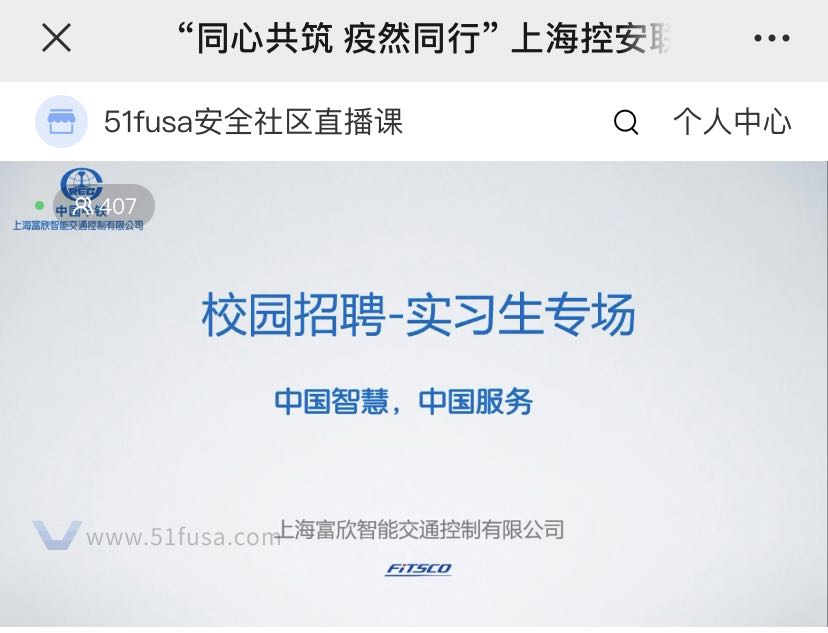 上海控安聯合校招“2022春季空中宣講會”第2場由上海控安、華東師大軟件工程學院共同主辦,包括華元創信、富欣智控、上海自儀院、長江汽車電子在內的4家高新科技領域知名企業一同協辦。本次活動主題為“同心共筑,‘疫’然同行”,通過小鵝通平臺以線上的形式舉辦,助力畢業生足不出戶實現更高質量就業。活動受到廣大師生的熱烈響應,當日直播間訪問量超500人次。