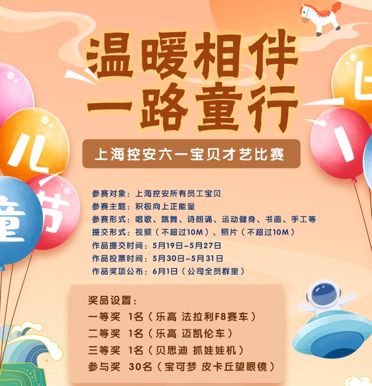 陪伴是最長情的告白,成長道路上,陪伴是父母給予孩子最好的禮物。為關注孩子的健康成長,讓孩子在自己盛大的節日里,留下一個愉快、難忘的回憶,同時為進一步豐富企業文化,增進和諧美好的家庭親子關系,在六一國際兒童節來臨之際,上海控安組織策劃了“溫暖相伴,一路‘童’行”主題作品征集活動,讓大朋友與小朋友們共同度過一個難忘的兒童節。