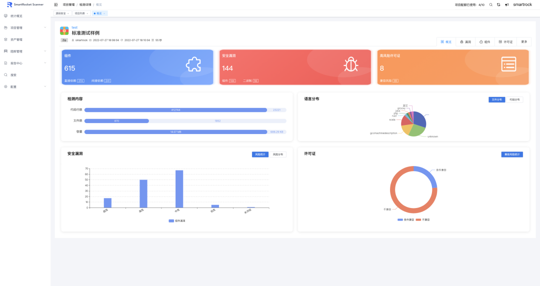 SmartRocket Scanner是一款開源組件成分資產(chǎn)安全與合規(guī)分析管理工具,基于左移安全、DevSecOps、實(shí)時(shí)監(jiān)控的安全理念,在軟件生命周期中對開源軟件和依賴組件進(jìn)行持續(xù)自動化識別、組件清單管理、安全風(fēng)險(xiǎn)分析與漏洞修復(fù)、許可證風(fēng)險(xiǎn)分析、持續(xù)集成管理、用戶庫管理等,并與第三方開發(fā)工具無縫集成,實(shí)現(xiàn)自動化的安全分析、策略執(zhí)行、持續(xù)集成以及實(shí)時(shí)監(jiān)控,針對新的漏洞及時(shí)響應(yīng)與定向通知。工具適用于敏捷開發(fā)/流水線/安全左移等持續(xù)管理與監(jiān)測平臺,來通過產(chǎn)品解決方案幫助企業(yè)解決對開源軟件維護(hù)、管理不善而產(chǎn)生的問題等。