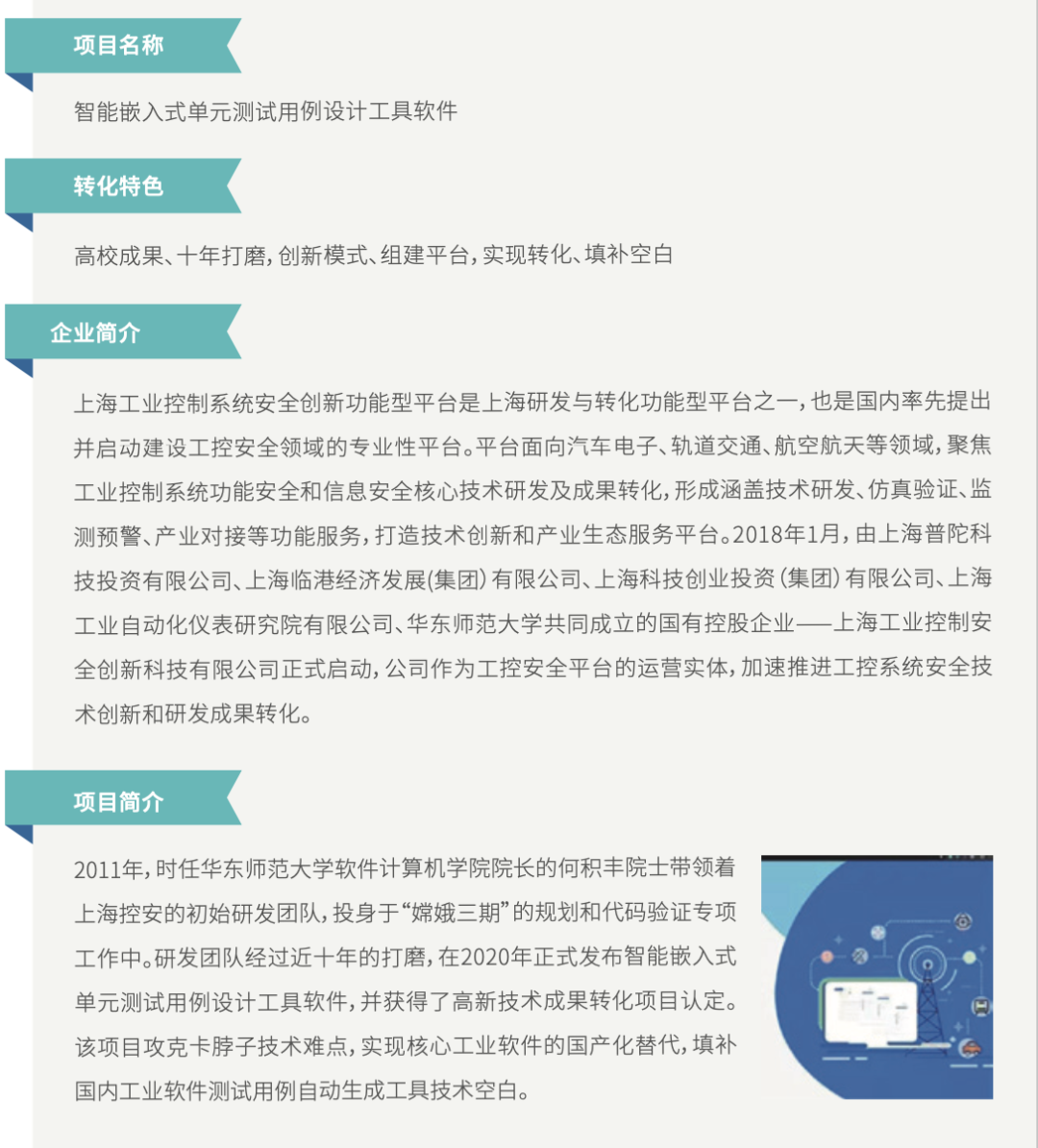 近日,上海市科學(xué)技術(shù)委員會發(fā)布《2021上海科技成果轉(zhuǎn)化白皮書》,《白皮書》匯總了2021年國家和上海出臺的科技成果轉(zhuǎn)化制度,以及上海的實踐成果與典型案例。上海控安自研產(chǎn)品“智能嵌入式單元測試用例設(shè)計工具軟件”入選《白皮書》企業(yè)成果轉(zhuǎn)化政策實踐案例。(?點擊閱讀產(chǎn)品詳情?)