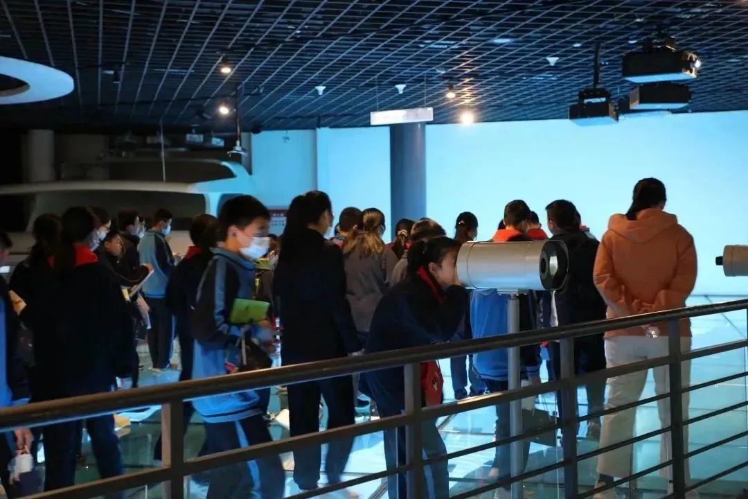 “長江素有‘黃金水道’之稱,在河流與海洋雙重影響下,為河口地區發展提供了得天獨厚的航運資源、土地資源、淡水資源、濕地資源等條件。”參觀過程中,場館講解員通過大型沙盤、超大弧形影墻、三維高科技仿真地圖等儀器設施,向同學們生動展示了長江河口的前世今生與四季變遷。