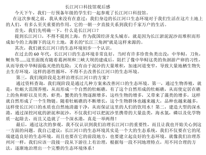 “我們身邊的長江河口生態環境對人們有著至關重要的作用,它的一朝一夕直接關系到千家萬戶的生活。”活動結束后,同學們用文字記錄下本次實踐學習心得,并表示通過科普活動不僅了解到了長江河口的水文特征與生態環境,更認識到以科技手段保護綠水青山、建設智慧城市的重要性。