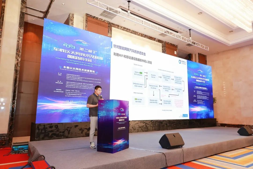上??匕部尚跑浖撔卵芯吭焊痹洪L、工控網絡安全組總監王博文,于大會首日發表“車載以太網信息安全技術應用與實踐”主題報告,深入剖析當前智能網聯汽車安全風險,分享探索車載以太網安全保障的實踐經驗。