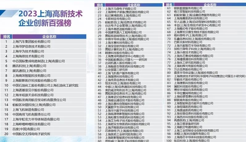 近日,上海社會科學院應用經濟研究所、上海市科技創業中心、上海工程技術大學聯合發布“2023上海高新技術企業創新百強榜”,上海控安榮登榜單。