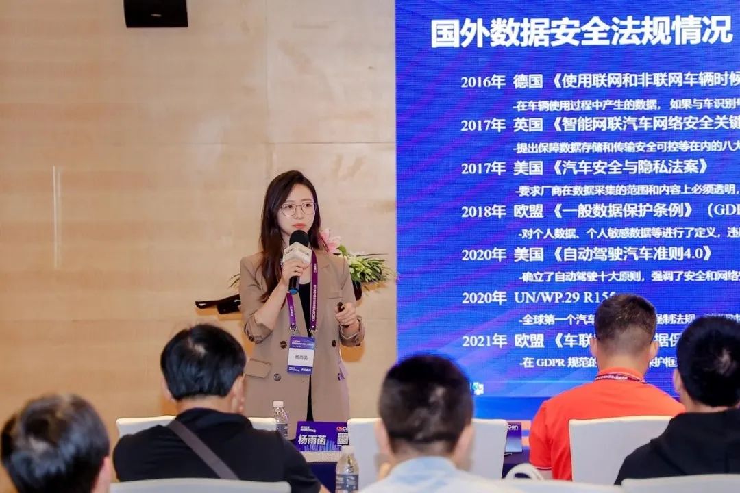 上海控安可信軟件創新研究院高級產品經理楊雨菡博士,于汽車行業質效前沿技術分論壇上,發表“智能網聯新時代—汽車數據生命周期安全防護關鍵技術”主題演講。
