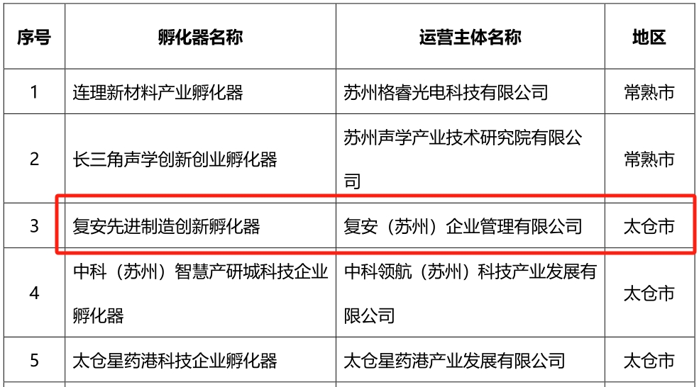 近日,蘇州市科技局公布2024年蘇州市科技企業孵化器名單,共計26家優秀科技企業孵化器入選。上海控安等單位聯合建設運營的復安先進制造創新孵化器(復安長三角科創孵化賦能中心,以下簡稱“復安”)位列其中。