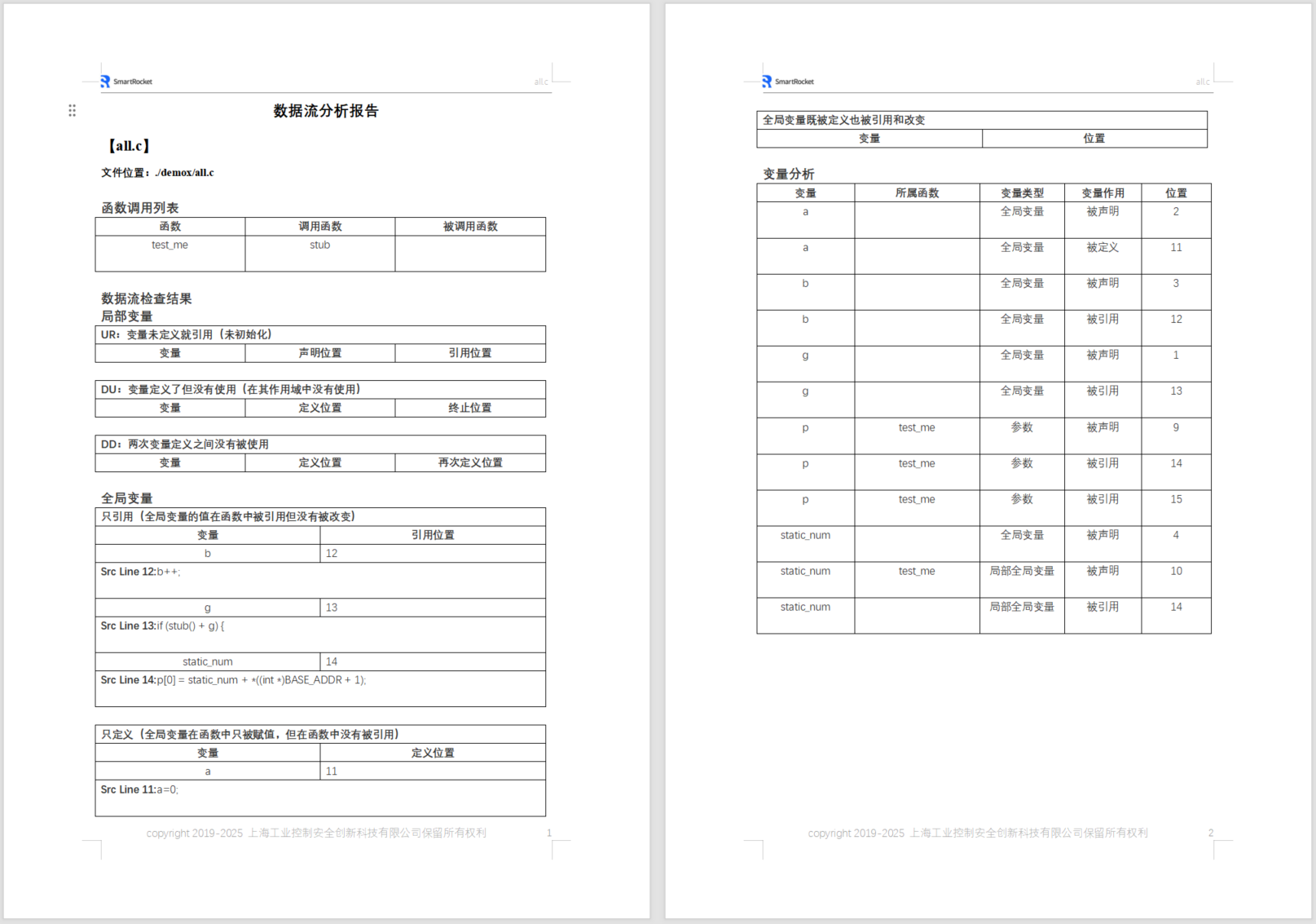通過靜態(tài)追蹤函數(shù)調用與變量生命周期,檢測控制流死循環(huán)及數(shù)據(jù)流未初始化等問題,并生成數(shù)據(jù)流控制流分析報告。