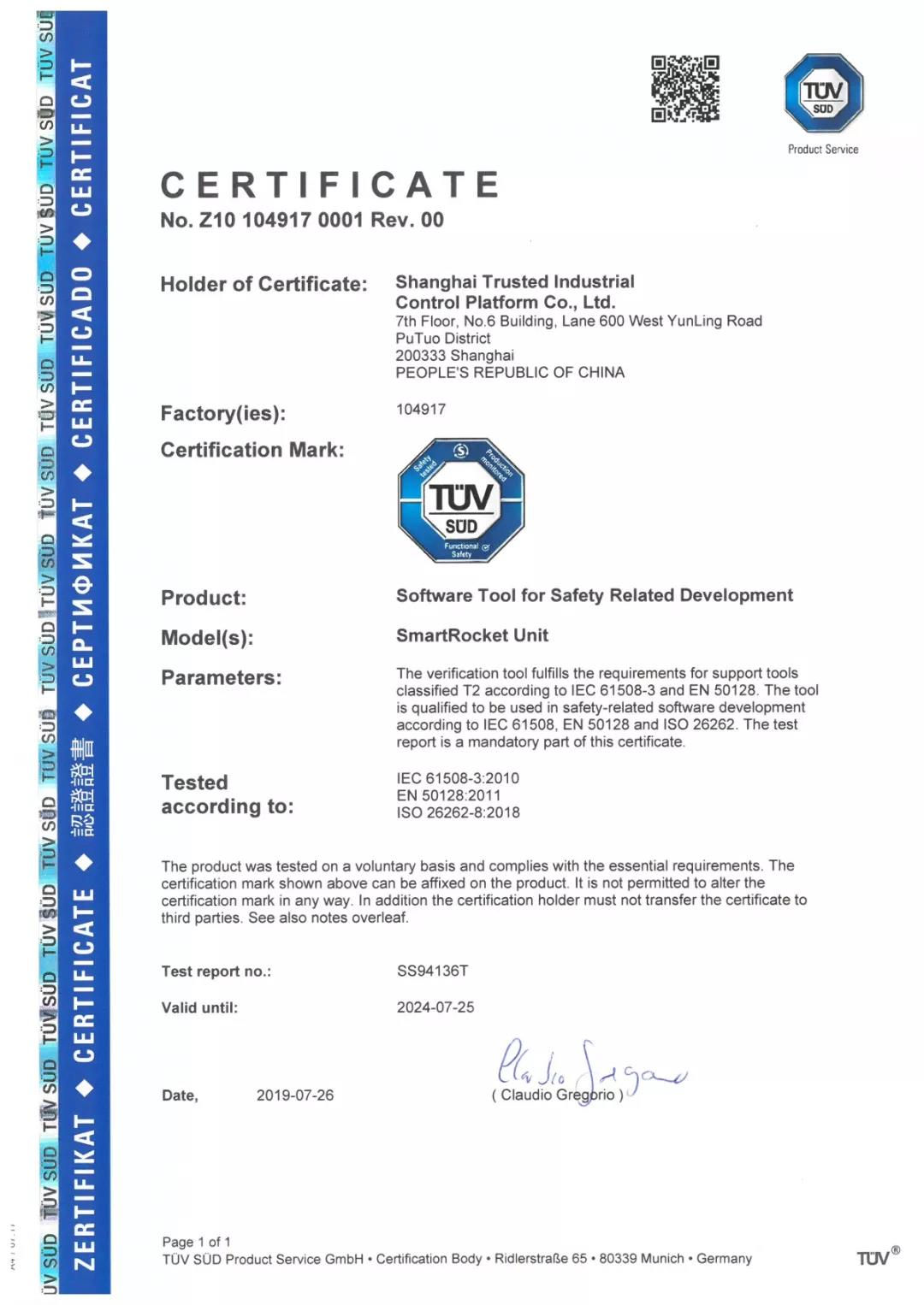 此舉標志著上海控安申請的功能安全工具鏈產品-工業嵌入式系統單元測試工具SmartRocket Unit滿足了IEC 61508-3:2010, EN 50128:2011, ISO 26262-8:2018標準中對于軟件開發工具的要求,適用于開發符合IEC 61508,EN 50128和ISO 26262的安全軟件。
