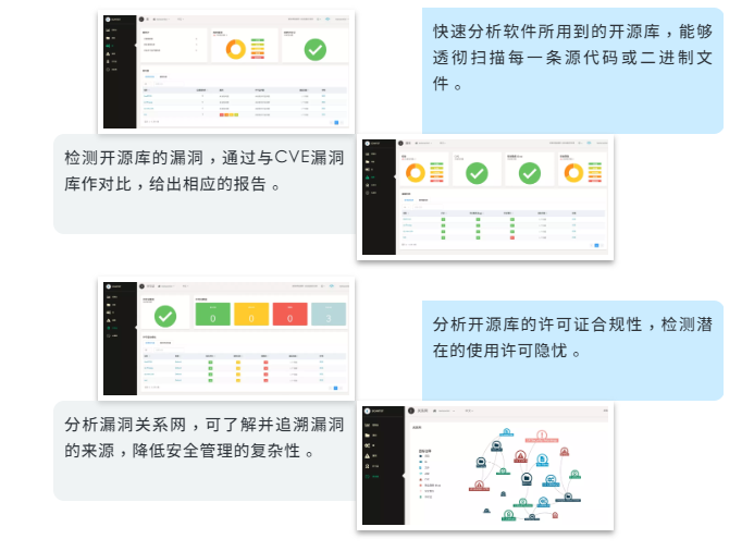 上海控安與新加坡南洋理工大學團隊聯合研發工業軟件成分分析工具SmartRocket Scanner,通過使用者所上傳的二進制文件或是源代碼的連接,檢索其中所利用的開源文件,并與國內外數據庫進行比對,檢測文件中所存在的安全漏洞與許可證隱憂等問題,并提供相對應的信息與修復建議。
