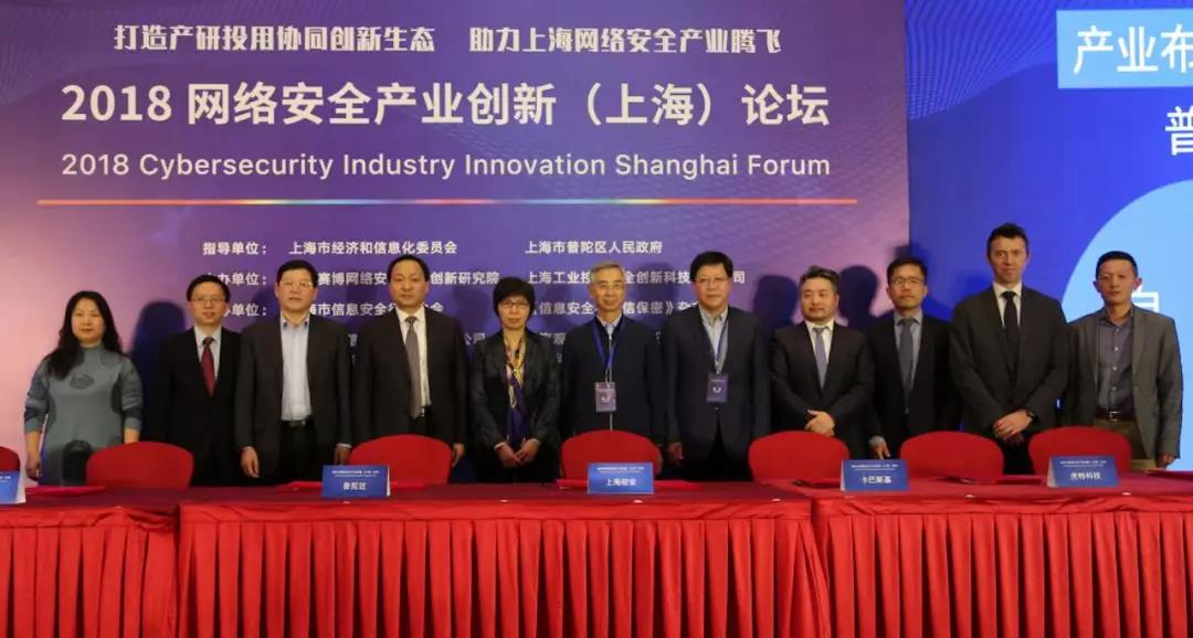 12月19日下午,2018網絡安全產業創新(上海)論壇在普陀隆重舉行。本次論壇由上海市經濟和信息化委員會、上海市普陀區人民政府指導,上海賽博網絡安全產業創新研究院、上海工業控制安全創新科技有限公司主辦。市經濟信息化委總工程師張英,普陀區委常委、副區長顧軍出席論壇并致辭,雙方共同為在上海普陀布局建設的首個工業互聯網安全產業示范區揭牌。普陀區、上海自儀院、觀安信息、上海控安、卡巴斯基、德凱、虎特科技等單位分別在現場簽署了戰略合作協議,協同推進工業互聯網安全產業集聚。