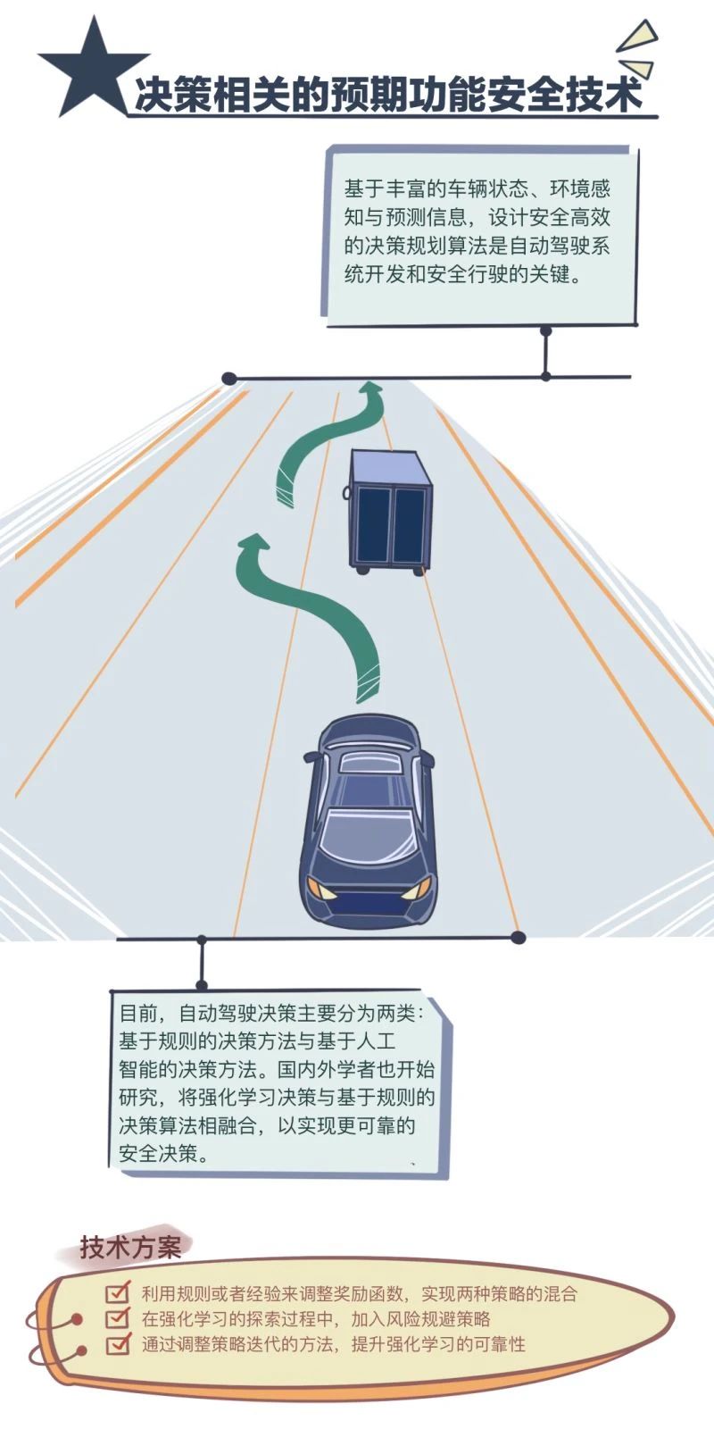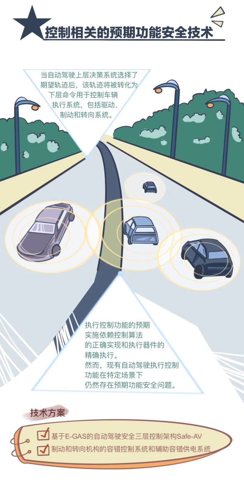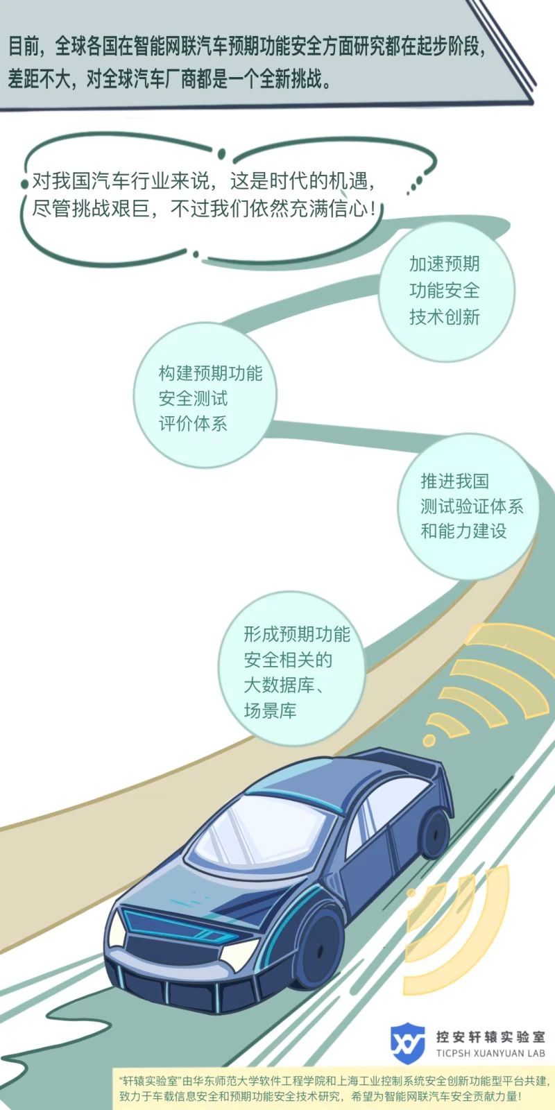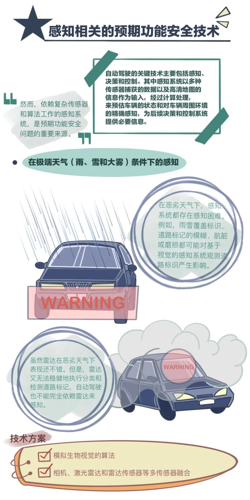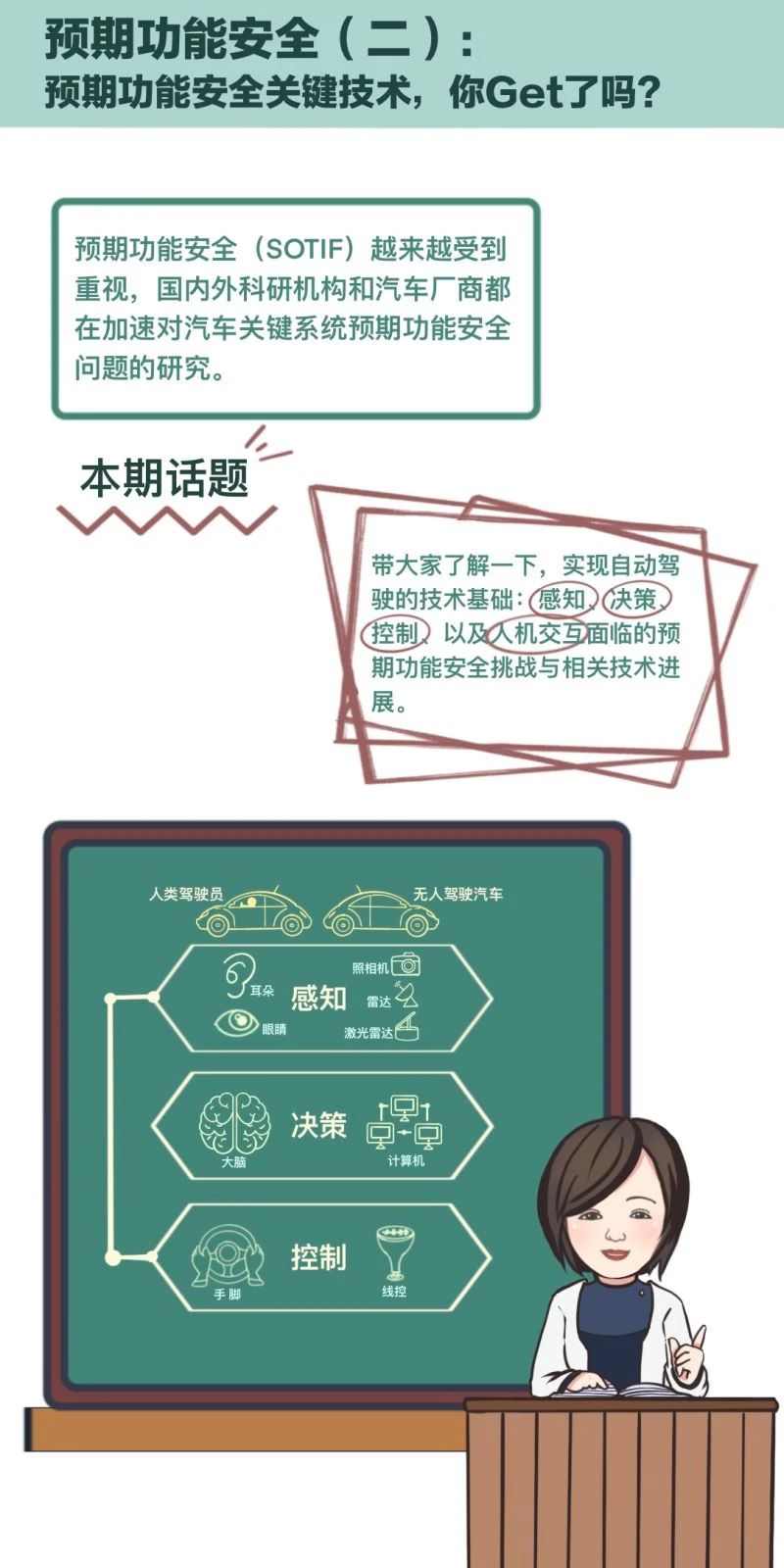 預(yù)期功能安全主要涉及“感知、決策、控制”等關(guān)鍵技術(shù)以及人機交互技術(shù)等。在加速預(yù)期功能安全技術(shù)創(chuàng)新方面業(yè)內(nèi)正在發(fā)力,為構(gòu)建預(yù)期功能安全測試評價體系,推進我國測試驗證體系和能力建設(shè),形成預(yù)期功能安全相關(guān)的大數(shù)據(jù)庫和場景庫形成落地方案。