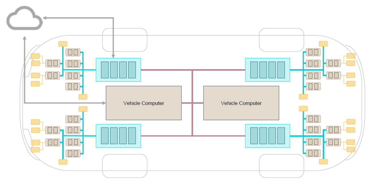 (2)大量執行器的數據,包括更高精度的電池管理大數據,更復雜的電機電控數據,底盤電子的轉向剎車懸架等執行器高速信令和反饋,車身內外飾、燈光控制、門窗控制,空調舒適性控制;