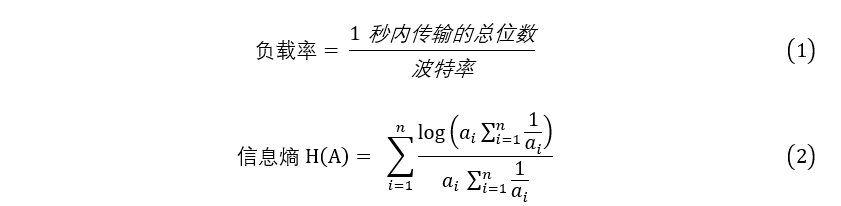 CAN總線負載率是指在CAN總線上單位時間內實際傳送的位數和可以傳送的位數之比。負載率檢測能夠監視網絡的流量情況。信息熵用來衡量系統的不確定性,被廣泛應用于計算機網絡的異常檢測。車載CAN網絡在某一工況下,以一定的規律發送,是低隨機性、相對靜態的。正常情況下,車載網絡的負載率和信息熵較為穩定。對車載網絡進行泛洪攻擊、注入攻擊等,則會使相應指標超過正常值。