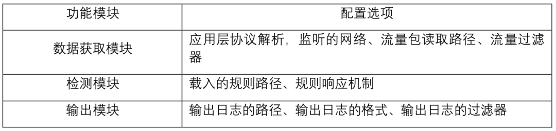 輸出模塊負責對檢測模塊的檢測結果進行進一步的處理與輸出。檢測模塊根據配置文件定義的輸出格式將檢測結果封裝成日志的形式。輸出模塊還可以通過配置相關參數以及設置事件過濾規則來修改日志輸出的頻率。