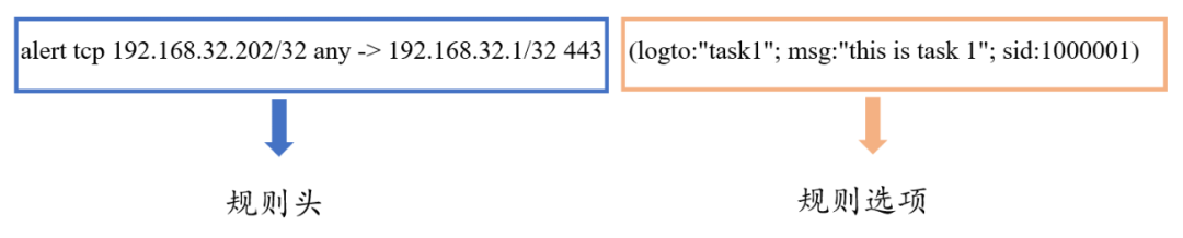 (1)規則頭:定義了數據包的發送端地址和端口、接收端的地址和端口、協議類型,以及規則匹配成功后應執行的操作。