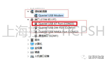 測試時通常使用的連接方式較為簡單,TBOX直接通過USB接口連接到測試電腦,在測試電腦上安裝對應的驅動程序即可發現生成的虛擬AT端口。我們以移遠通訊的驅動為例,驅動安裝成功后,連接設備時,在電腦的設備管理中會出現USB AT端口,如下圖所示: