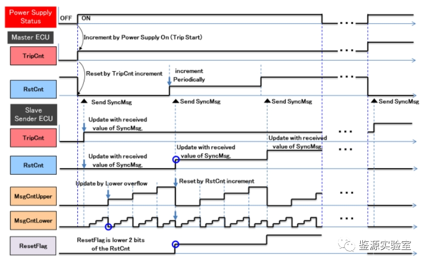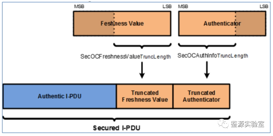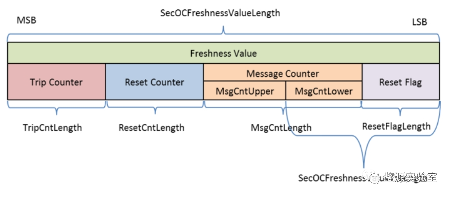 圖1 SecOC在BSW中的架構圖 SecOC通信流程依賴于兩大核心組件:消息認證與新鮮度值(Freshness Value,FV)。為了確保消息的真實性與完整性,SecOC利用消息認證碼(Message Authentication Code,MAC)進行核實。在消息發送過程中,系統會利用預定的密鑰生成MAC,并將其附加在原消息之后。而在消息接收端,系統會再次利用相同的密鑰計算MAC,并與接收到的MAC進行校驗。如若不符,則表明消息在傳輸過程中可能遭到了篡改,或者并非來自一個合法的發送方。而Freshness Value(FV)的存在主要是為了應對“重放攻擊”。為此,每一條消息都會伴隨一個FV值。這是一個不斷變化的動態值,如計數器或時間戳,確保每一條發送的消息均具有其獨特性。在MAC的生成過程中,FV也起到了關鍵作用。這一整個流程如圖2所示。 圖2 SecOC通訊流程圖 接下來,我們將根據AUTOSAR SecOC官方文檔的附錄11.4,深入探討基于多新鮮度計數器的SecOC機制是如何實現的。在此示例中,我們遇到三個關鍵運行實體,它們是:新鮮度管理器ECU(即“Master”),以及負責接收和發送報文的ECU(我們稱之為“Slave”)。在此機制中,Slave的任務是接收來自Master廣播的Freshness Value(FV)計數,以便同步更新其本地的FV計數。簡單地說,Master負責維護并廣播當前的FV計數,而Slave根據接收到的計數進行更新,確保它們的計數值保持一致。這種同步機制是為了確保在整個系統中,每次的通信都有一個獨特的、不斷更新的FV,以加強安全性。這三者之間的交互和關系可以在圖3中看到。 圖3 多新鮮度計數器管理關系圖 在SecOC通信流程中,所有的數據傳輸都默認采用大端模式。發送者發送的安全報文(簡稱S-I-PDU)由幾個部分組成:S-I-PDU報文頭、待保護的交互層協議數據單元(I-PDU)、Freshness Value(FV)和Authenticator(也稱為MAC)。值得注意的是,S-I-PDU報文頭和FV并不是每次都必須的,它們是可選組件。另外,I-PDU不一定包含原始報文中的所有載荷(payload),它可能僅包含部分數據。進一步說,通常情況下,我們不會完整地發送FV和MAC的所有數據。為了效率和安全性的考慮,我們通常只選取其中的部分數據包含在S-I-PDU中。具體來說,對于FV,我們從其低位開始,選取一定長度的數據;而對于MAC,我們則從其高位開始,選取一定長度的數據。這種數據組織和截取的方式確保了在有限的報文長度內,我們可以傳輸最關鍵的、具有代表性的數據。如圖4和圖5所詳細展示。 圖4 安全報文構成圖 圖5 FV和MAC截取示意圖 MAC(消息認證碼)的計算是關于數據完整性和真實性驗證的核心。在SecOC中,其生成主要采用對稱加密算法。例如,通過使用AES算法,我們可以得到CMAC(加密消息認證碼)。為了計算MAC,我們需要考慮幾個關鍵部分: · Data Id:這是一個兩字節的數據標識符,它有助于區分和識別不同的I-PDU。 · I-PDU的保護部分:這并不是完整的I-PDU數據,而是我們選擇需要加密保護的部分。 · 完整的FV (Freshness Value):如前所述,FV是一個動態的值,用于確保每條消息的獨特性,避免重放攻擊。 將這三個部分組合起來,我們就可以得到MAC的輸入數據。然后通過應用特定的加密算法(如AES生成CMAC),將這些輸入轉化為獨特的MAC值。如圖6所示。 圖6 生成MAC數據構成圖 在此示例中,完整的Freshness Value(FV)是由以下四個部分構成的: · Trip Counter (TripCnt):由主Freshness Value Manager(主FVM)控制,每一次“trip”(如車輛啟動和關閉的周期)都會遞增。它主要記錄了車輛啟動的次數。上下電時觸發。 · Reset Counter (ResetCnt):由主FVM管理,它基于配置的周期(ResetCycle)進行周期性遞增。可以看作是一個中間級別的計數器,用于追蹤系統重置的次數。 · Message Counter (MsgCnt):與發送器ECU相關,每次發送信息時都會遞增。用于追蹤特定ECU發送的消息數量。 · Reset Flag (ResatFlag):與ResetCnt同步更新。它直接取自ResetCnt的低位數據,大小通常為兩個bit。作為一個標志位,它提供了關于系統重置狀態的快速參考。 當我們談到需要截取的FV時,特指Reset Flag和MsgCntLower(消息計數器的低位部分)。如圖7所示,這些組件如何組合以形成完整的FV。同時,它們之間的更新關系和如何相互影響可以在圖8中看到。這種設計確保了在保持消息的唯一性和安全性的同時,系統能夠高效地進行操作。 圖7 FV構成與截取圖 圖8 FVCnt更新邏輯圖 接下來,我們將探討SecOC的同步報文(稱為SyncMsg)及其結構。在SecOC的上下文中,同步報文起著至關重要的作用,它確保系統中的所有實體(例如Slave)與主控制實體(例如Master或通常在整車中的網關)保持同步。簡而言之,它允許這些實體對關鍵的計數器值和狀態有一個統一的理解,從而確保整個通信過程的安全性。同步報文的構成如下:TripCnt、ResetCnt和MAC。如圖9所示,這三個部分組合形成了完整的同步報文。Master(通常是網關)會定期發送這些同步報文,確保系統中的所有Slave能夠與之保持同步,從而維護整個系統的安全通信。 圖9 SyncMsg構成 同步報文的MAC計算與安全報文的MAC確實存在細微差異。在同步報文的環境中,為了確保消息的真實性和完整性,我們需要使用稍有不同的數據元素來生成MAC。在同步報文中,生成MAC需要以下數據: · Message ID (MsgID):這是一個唯一標識該消息的值。它有助于區分和識別不同的同步報文。MsgID通常占用兩個Byte。 · Freshness Value (FV):在這種上下文中,FV由TripCnt和ResetCnt組成。 為了確保整體數據長度為整個Byte,如果這兩個計數器的組合不構成