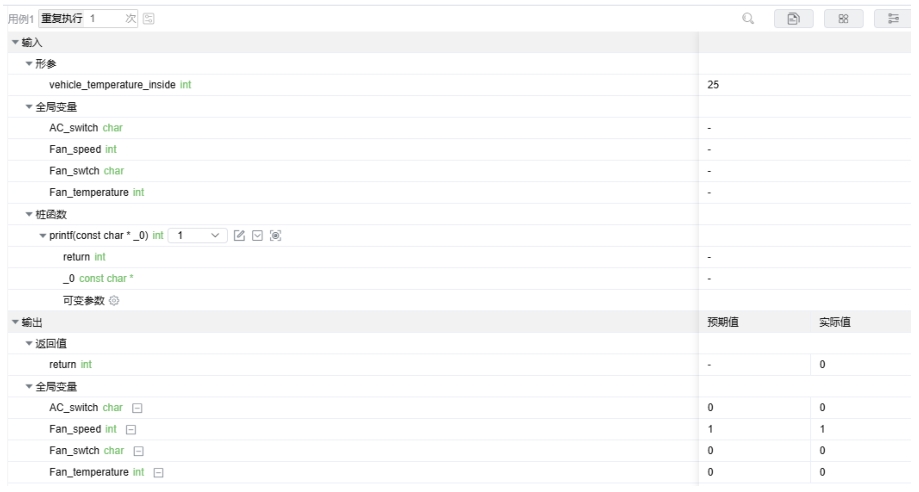 有效等價類中取vehicle_temperature_inside 參數輸入值0時,測試用例如下:
