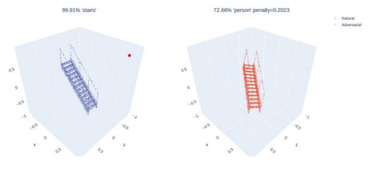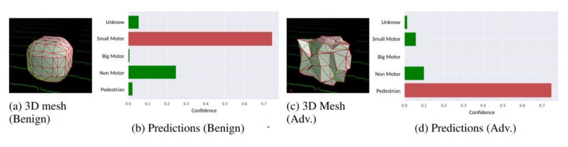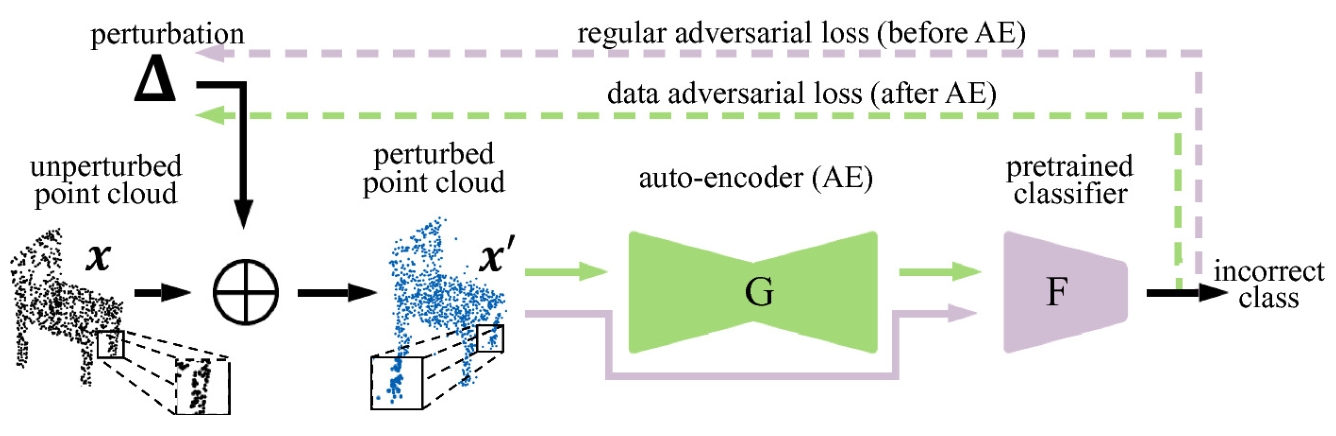 01 引 言 隨著自動駕駛技術的迅速發展,雷達和激光雷達等傳感器在自動駕駛汽車中的作用愈發重要。它們能夠生成3D點云數據,幫助車輛實時感知周圍環境并做出安全決策。然而,盡管這些傳感器對駕駛環境的檢測非常精確,它們也面臨一種新興的威脅——對抗性攻擊。 對抗性攻擊是一種通過微小但精心設計的擾動,旨在欺騙機器學習模型的攻擊方式。對于自動駕駛系統而言,這意味著通過對傳感器輸入的數據進行極小的修改,攻擊者可以導致自動駕駛汽車對其周圍環境作出錯誤的判斷。例如,在點云識別模型中,攻擊者可以通過擾動點云中的數據,使得車輛無法正確檢測障礙物或行人,從而引發嚴重的安全事故。 這種攻擊方式的危險在于,擾動往往非常微小,但它足以誤導深度學習模型。例如,通過使用針對3D點云的對抗性攻擊,攻擊者可以制造虛假目標,或隱藏真實目標,使車輛在物理世界中無法正確響應。這些攻擊不僅對自動駕駛的安全性構成重大威脅,也對自動駕駛系統的魯棒性提出了新的挑戰。 02 針對點云識別模型的對抗性攻擊 2.1 2D對抗性攻擊方法向3D點云模型遷移的挑戰與難點 2014年,Goodfellow等[1]的研究指出,在待識別圖片中巧妙地加入一定的噪聲,會使得圖像被神經網絡誤分類。同時,該研究也揭示了神經網絡的脆弱性,使得神經網絡的攻擊方法成為了近年來深度學習的研究熱點之一,隨后,出現了大量針對圖像的對抗性攻擊方法。如Su等嘗試使用更改圖像的單個像素的方式完成對神經網絡的攻擊,該方法通過改變圖像中的單個像素觀察神經網絡輸出概率的方式,搜索最終生成對抗樣本需要更改的像素,Wang等提出一種使用替代模型訓練可遷移的對抗樣本的方法,通過訓練一定數量的替代網絡生成可遷移的對抗樣本。 但這些方法都難以直接遷移應用至點云識別模型的攻擊中:首先,2D的圖像和3D的點云數據結構上存在巨大的差異,2D圖像中的像素是有序的,按行列排布,而3D點云數據中的點是無序的,點的排列順序對點云的幾何結構沒有影響。這使得許多直接基于像素位置的2D方法無法簡單遷移到3D點云中,因為點云沒有固定的排列結構。另外,3D點云相比于2D圖像通常更加稀疏。點云中的每個點可能包含有限的鄰居點,而2D圖像中的每個像素通常都有固定數量的鄰居。這種稀疏性增加了在3D點云上生成有效對抗性樣本的難度。還有,2D圖像和3D圖像的坐標空間不同,在2D圖像中,像素位于離散的二維網格中,而3D點云的數據位于連續的三維空間中。攻擊者在2D圖像上進行的像素擾動非常直觀,而在3D空間中,修改點的坐標會影響物體的形狀、姿態和幾何結構,使得在生成對抗性樣本時需要更復雜的幾何變換。3D點云模型對旋轉和平移等幾何變換相對敏感。使得對抗性攻擊在3D點云模型上相比于2D圖像識別模型更容易受到空間和角度的變化所影響最終導致失效。最后,3D模型的對抗性攻擊相比于2D模型計算量更大,3D數據的處理往往比2D圖像復雜得多,計算成本更高。在生成對抗性樣本時,算法需要處理大量點,這顯著增加了時間和資源的消耗。 2.2 針對點云識別模型的對抗性攻擊算法介紹 雖然將2D模型的對抗性攻擊方法遷移至3D點云的攻擊方法存在諸多挑戰,但還是有研究人員成功地將應用于2D模型的對抗性攻擊方法遷移到了針對3D點云模型的方法中。Xiang等[2]提出了一種基于C&W的攻擊方法,稱之為3DAdv。3D Adv采用了C&W作為尋找對抗性特征使用的待優化函數,采用Chamfer距離用于衡量兩個點云之間的相似性,通過梯度下降的方法求解出最后的對抗性特征。3DAdv采用了Chamfer距離來度量原始點云與擾動點云的相似性:這使得擾動后的點云在幾何結構上依然保持與原始點云的高度相似,同時允許針對特定點的微小擾動,采用Chamfer距離很好地解決了L2范式等方法無法應用于評估點云之間的相似度問題,一定程度上解決了3D點云的無序性問題和稀疏性問題。3D Adv雖然在一定程度上解決了點云數據和圖像數據特征不一致的問題,但其難以在現實世界中復現,另外還存在生成的計算復雜度高、適用范圍有限等局限性。 圖 1 3D Adv可視化效果[2] 另外也有其它的研究者另辟蹊徑,選擇使用別的方法生成對抗性的點云。比如Harmi等[3]就通過對抗性生成網絡進行對抗性點云的生成,對抗性生成網絡由兩個部分——生成器和判別器組成,生成器負責生成對抗樣本,判別器用于評估這些樣本的真實性。AdvPC 通過這種對抗性訓練,生成在幾何上與原始點云相似但能夠欺騙分類器的對抗樣本。通過這種方法生成的樣本具有魯棒性強、可遷移性強的特點:傳統的基于梯度的對抗性攻擊通常需要對目標模型進行專門優化,生成的對抗樣本難以在不同模型之間通用。AdvPC通過生成模型,能夠生成對多個模型都有效的對抗性樣本。換句話說,生成的對抗樣本具有較強的可遷移性,在不同的3D點云分類器中依然能夠誤導模型。另外,由于AdvPC結合了生成對抗網絡的強大能力,它生成的對抗樣本在一定的旋轉、平移或噪聲干擾下仍然能夠保持有效。相比于直接的梯度攻擊,AdvPC生成的對抗性樣本更能適應實際的物理環境變化,適合在現實應用中使用。但是,AdvPC也存在自己的局限性:由于GAN的訓練過程本身較為復雜,AdvPC的實現需要大量計算資源,尤其在生成高質量的對抗樣本時,訓練過程可能會消耗大量時間。另外,盡管AdvP
