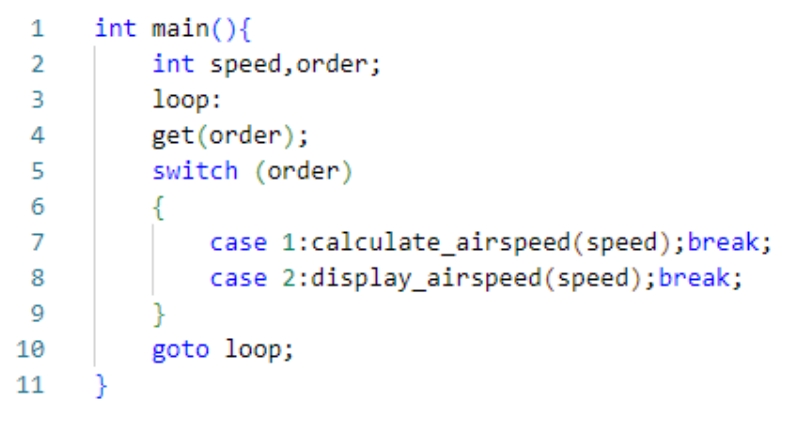 如上圖所示Calculate Air Speed和Display Air Speed兩個函數都是從同一個主程序調用的,并且共享一個全局變量“AirSpeed”。Calculate Air Speed計算變量“速度”的值,即設定操作,而功能Display Air Speed“速度”值輸出到顯示設備,即使用操作。代碼可能采用下圖所示的形式。