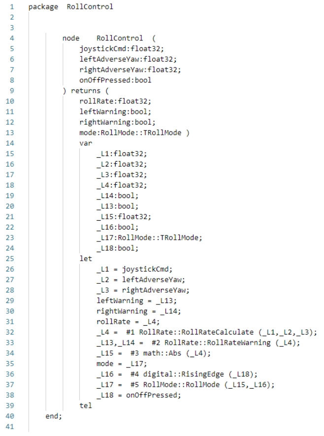 圖10 RollControl飛機控制模塊Lustre代碼示意圖