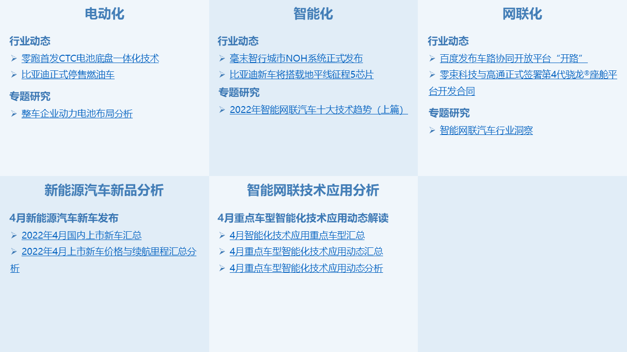 控安汽車研究院將定期發布《洞察:汽車產業新三化》月刊報告,緊扣汽車“新三化”,針對當月發生的重要行業新聞進行深度分析解讀,并設有市場板塊,主要分析月度車市銷量、新能源汽車新車型上市匯總、重點上市新車智能網聯技術搭載等情況,為汽車行業提供專業的資訊解讀和咨詢服務。