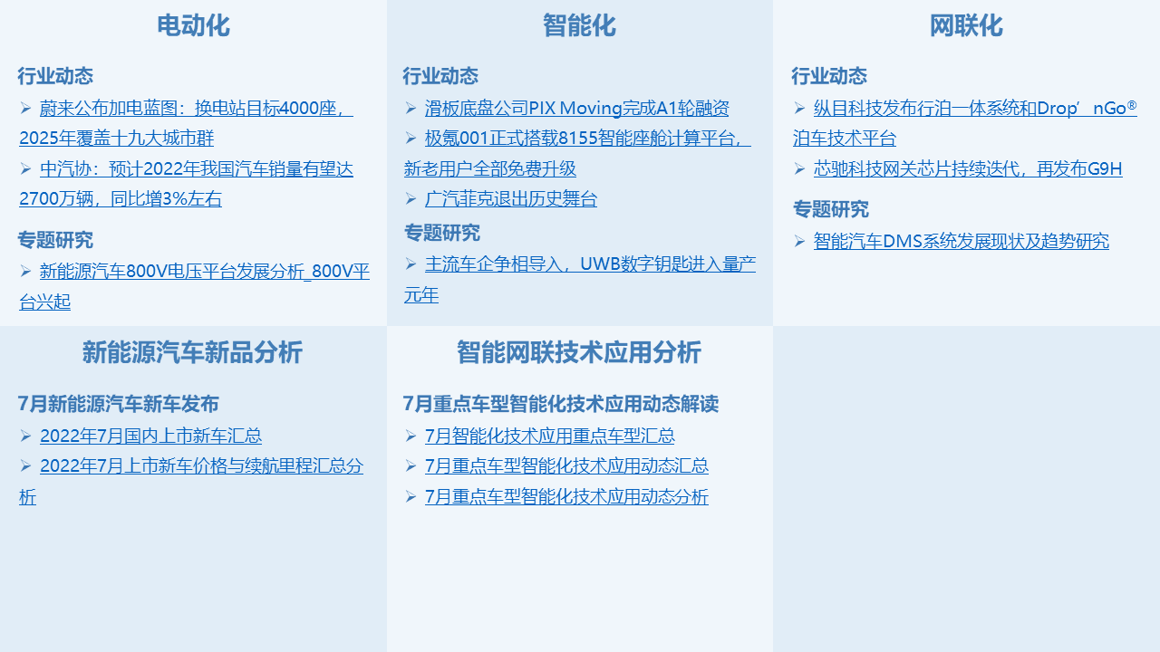 控安汽車研究院將定期發布《洞察:汽車產業新三化》月刊報告,緊扣汽車“新三化”,針對當月發生的重要行業新聞進行深度分析解讀,并設有市場板塊,主要分析月度車市銷量、新能源汽車新車型上市匯總、重點上市新車智能網聯技術搭載等情況,為汽車行業提供專業的資訊解讀和咨詢服務。