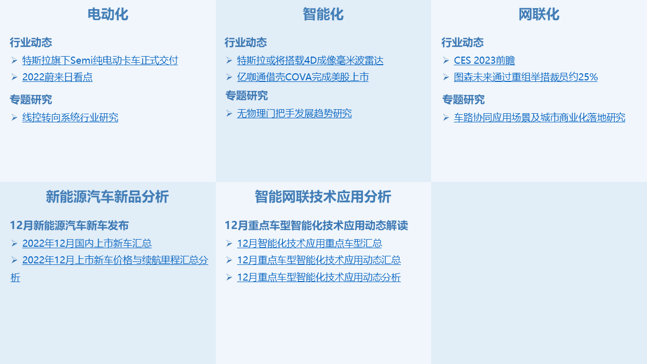 控安汽車研究院將定期發布《洞察:汽車產業新三化》月刊報告,緊扣汽車“新三化”,針對當月發生的重要行業新聞進行深度分析解讀,并設有市場板塊,主要分析月度車市銷量、新能源汽車新車型上市匯總、重點上市新車智能網聯技術搭載等情況,為汽車行業提供專業的資訊解讀和咨詢服務。