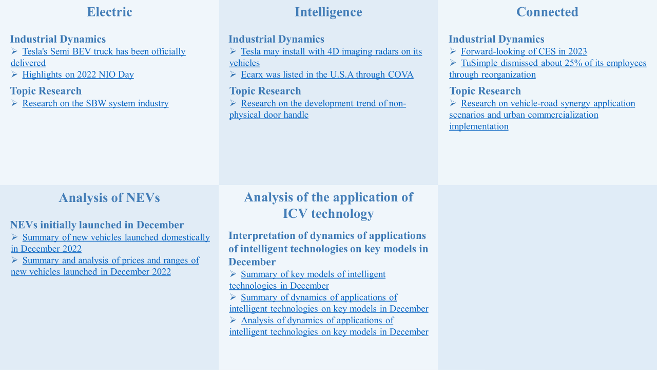 控安汽車研究院將定期發布《洞察:汽車產業新三化》月刊報告,緊扣汽車“新三化”,針對當月發生的重要行業新聞進行深度分析解讀,并設有市場板塊,主要分析月度車市銷量、新能源汽車新車型上市匯總、重點上市新車智能網聯技術搭載等情況,為汽車行業提供專業的資訊解讀和咨詢服務。