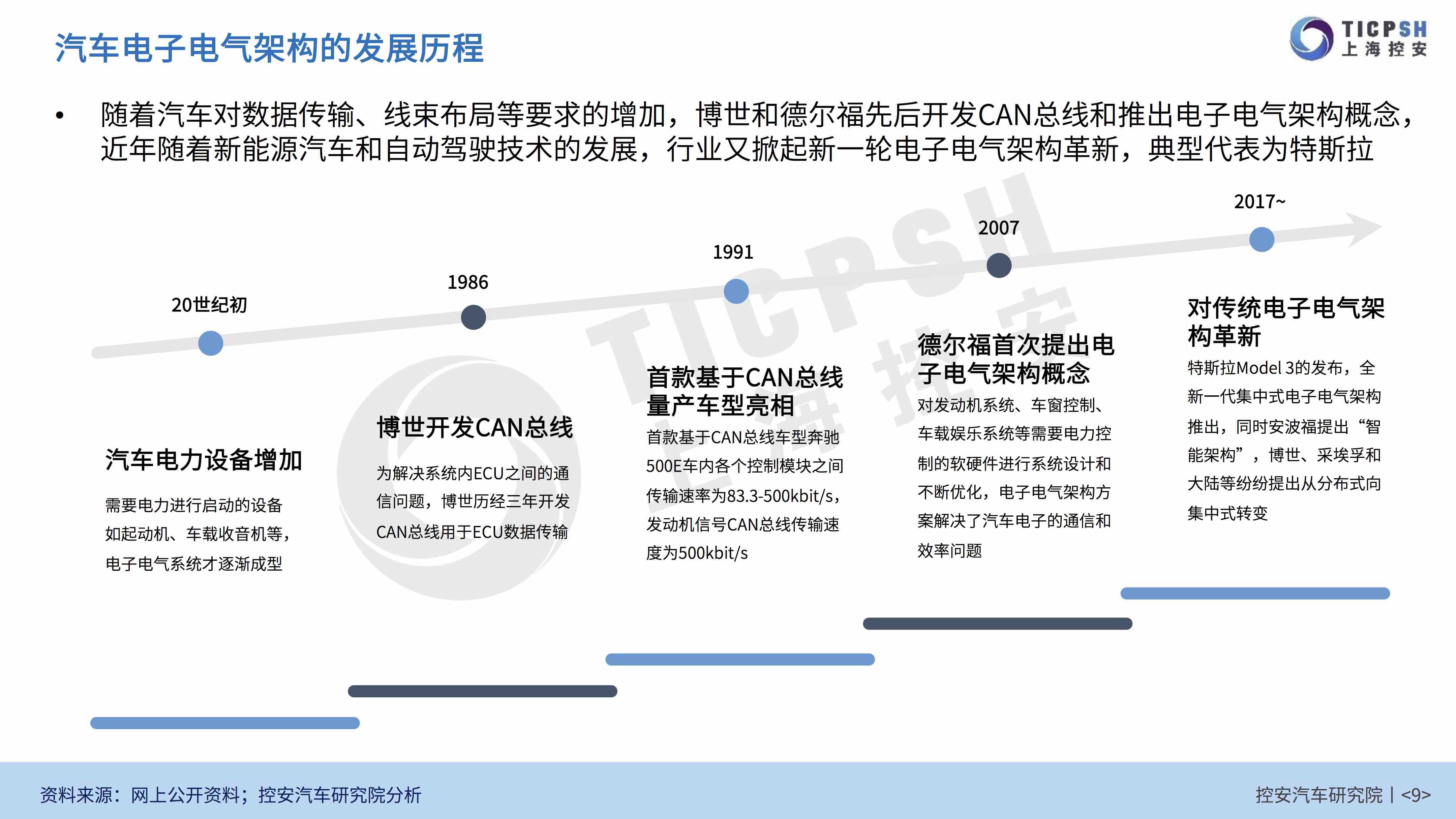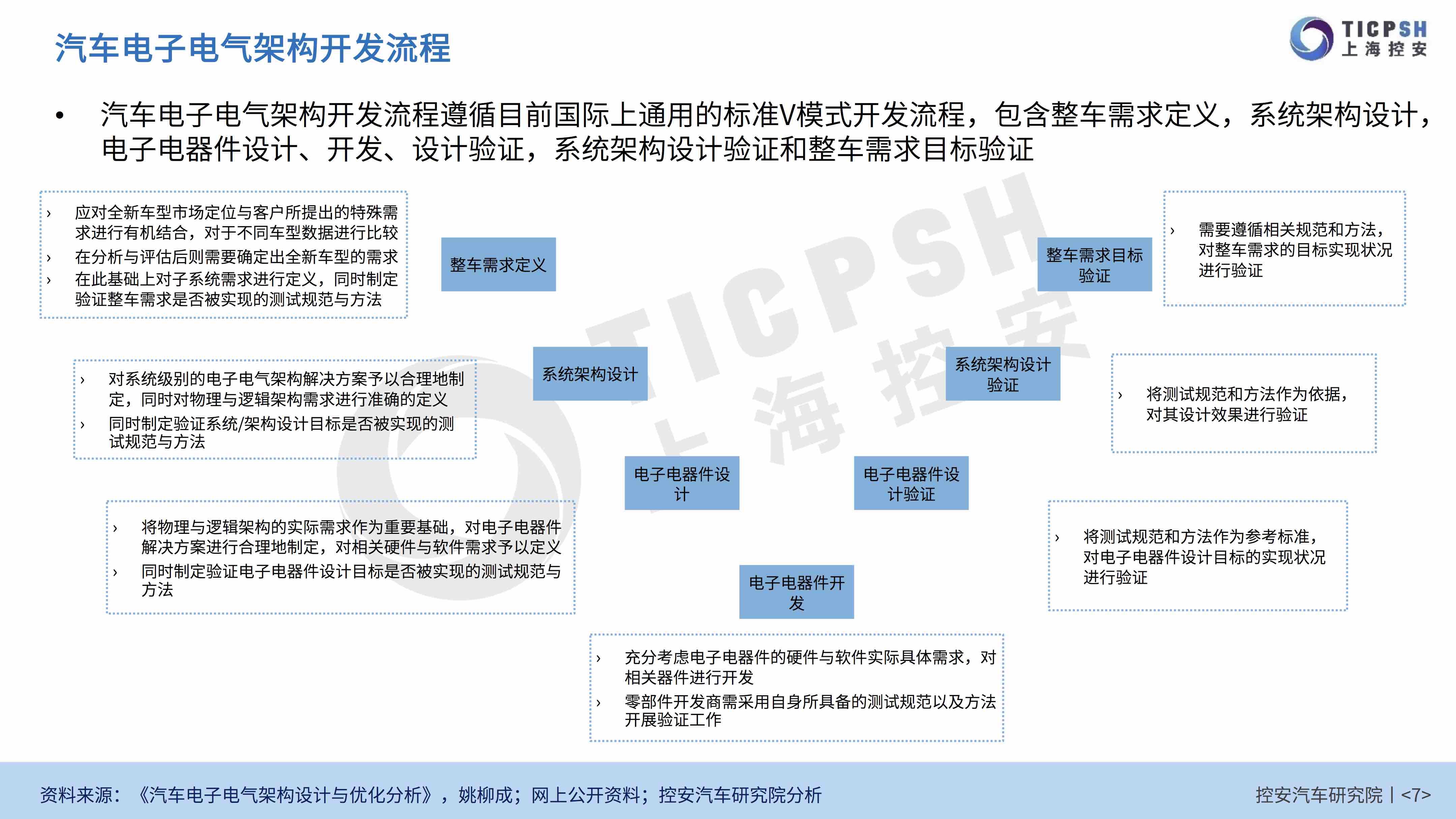 控安汽車研究院發布《汽車電子電氣架構分析報告》(2020版)。報告介紹了汽車電子電氣架構的概況和發展趨勢、支撐技術、開發流程、架構、軟件、硬件的升級趨勢,以及各汽車廠家案例等內容。