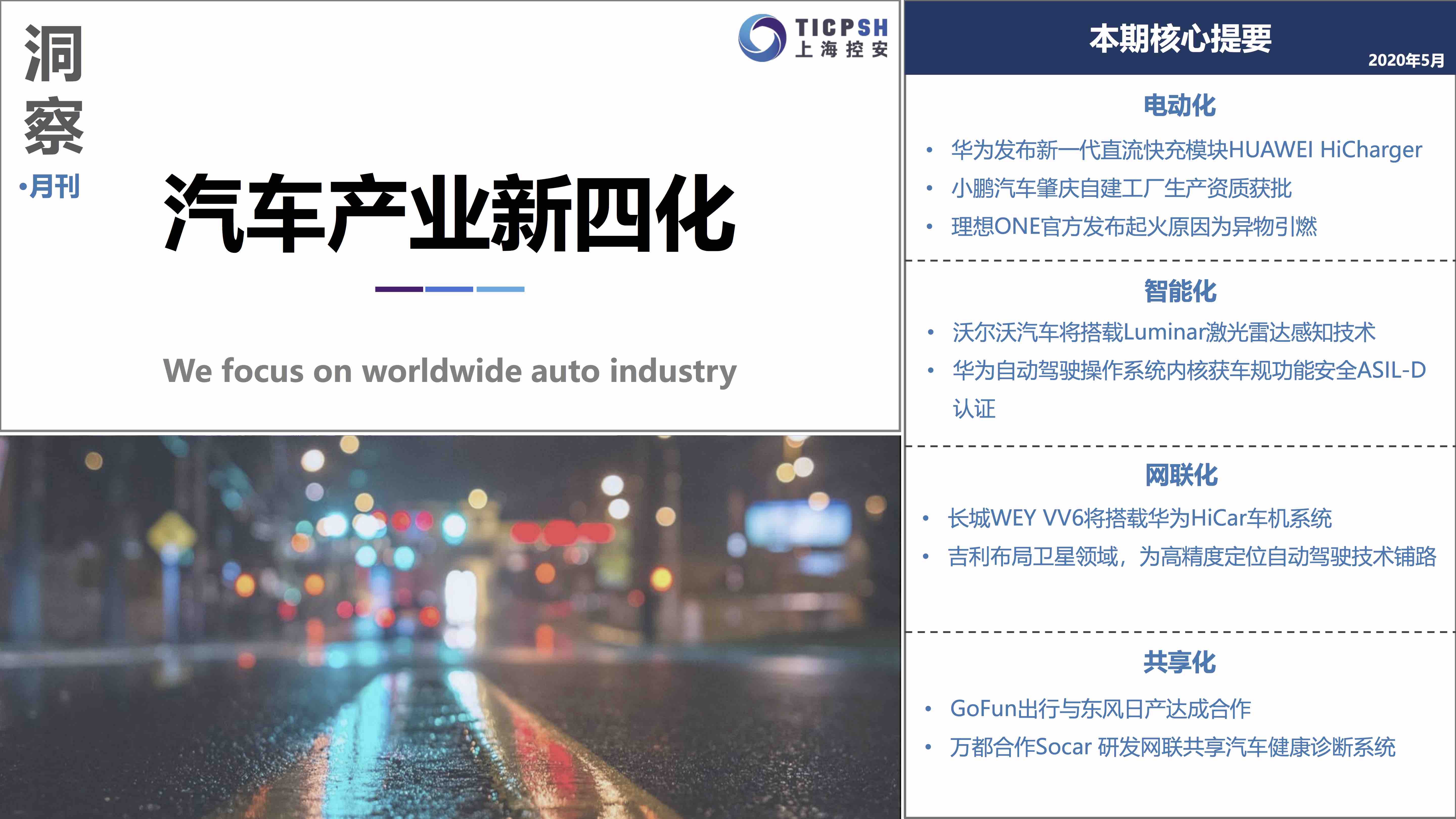 控安汽車研究院將定期發(fā)布《洞察:汽車產(chǎn)業(yè)新四化》月刊報告,緊扣汽車“新四化”,針對當(dāng)月發(fā)生的重要行業(yè)新聞進行深度分析解讀,并設(shè)有市場板塊,主要分析月度車市銷量、新能源汽車新車型上市匯總、重點上市新車智能網(wǎng)聯(lián)技術(shù)搭載等情況,為汽車行業(yè)提供專業(yè)的資訊解讀和咨詢服務(wù)。