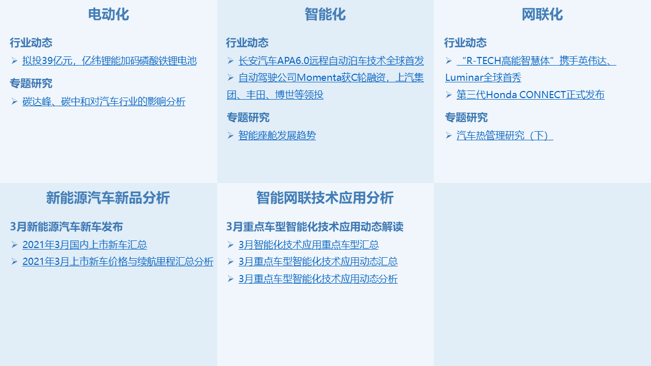 控安汽車研究院將定期發布《洞察:汽車產業新三化》月刊報告,緊扣汽車“新三化”,針對當月發生的重要行業新聞進行深度分析解讀,并設有市場板塊,主要分析月度車市銷量、新能源汽車新車型上市匯總、重點上市新車智能網聯技術搭載等情況,為汽車行業提供專業的資訊解讀和咨詢服務。