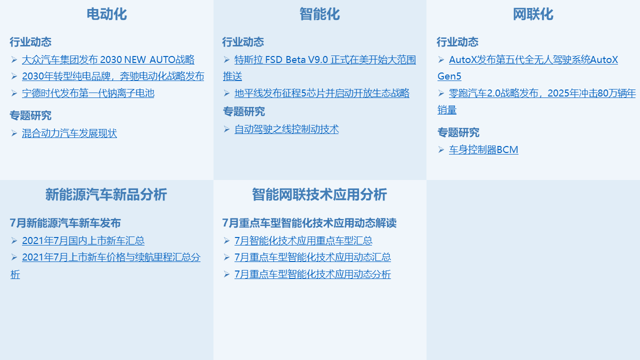 控安汽車(chē)研究院將定期發(fā)布《洞察:汽車(chē)產(chǎn)業(yè)新三化》月刊報(bào)告,緊扣汽車(chē)“新三化”,針對(duì)當(dāng)月發(fā)生的重要行業(yè)新聞進(jìn)行深度分析解讀,并設(shè)有市場(chǎng)板塊,主要分析月度車(chē)市銷(xiāo)量、新能源汽車(chē)新車(chē)型上市匯總、重點(diǎn)上市新車(chē)智能網(wǎng)聯(lián)技術(shù)搭載等情況,為汽車(chē)行業(yè)提供專(zhuān)業(yè)的資訊解讀和咨詢(xún)服務(wù)。