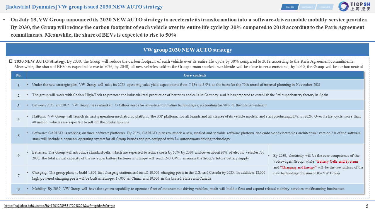 《新能源汽車產業發展規劃(2021-2035年)》指出,要以習近平新時代中國特色社會主義思想為指引,堅持新發展理念,以深化供給側結構性改革為主線,堅持電動化、網聯化、智能化發展方向,以融合創新為重點,突破關鍵核心技術,優化產業發展環境,推動我國新能源汽車產業高質量可持續發展,加快建設汽車強國。