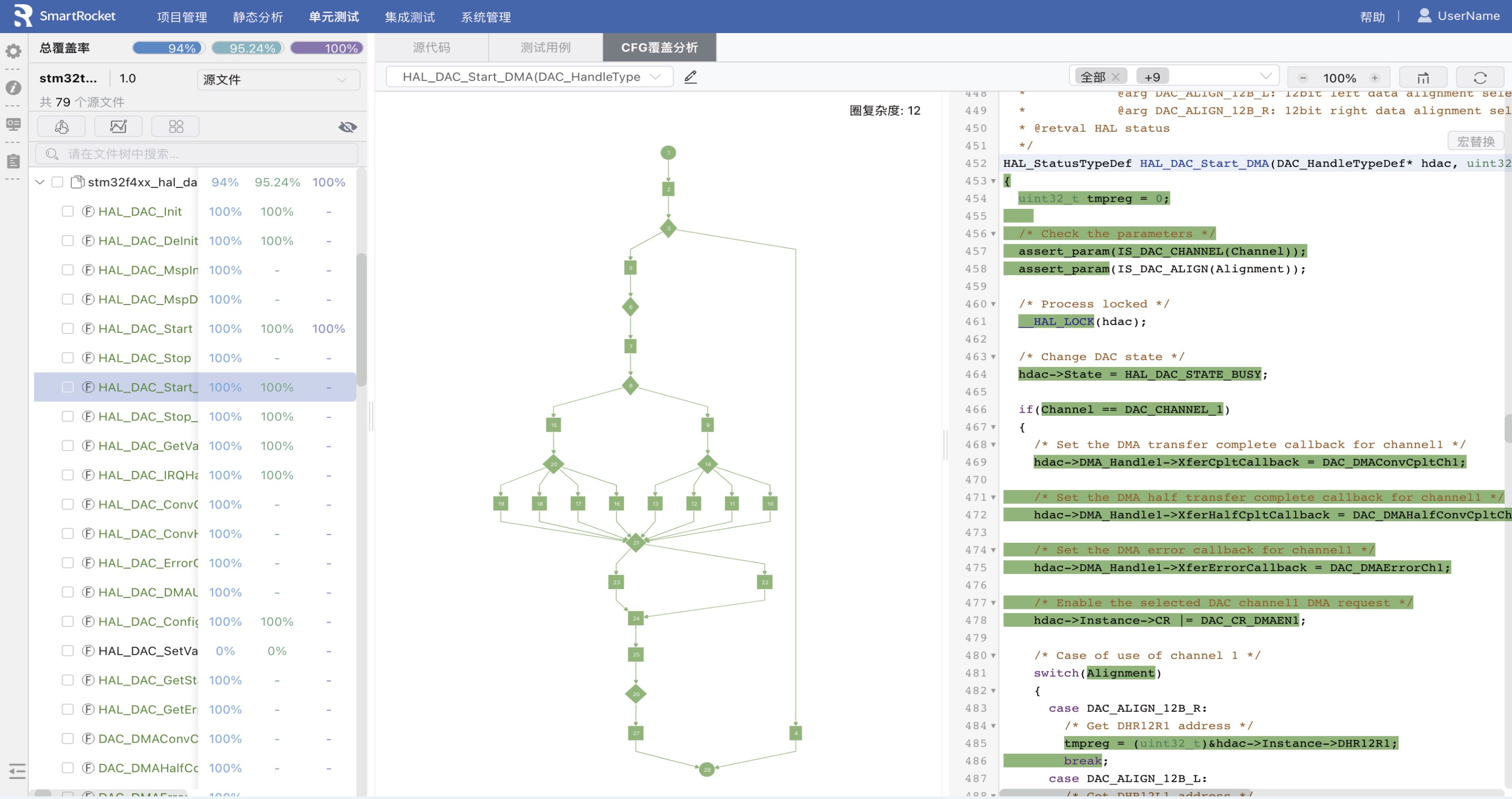 支持部分集成和全部集成,可以自主設置調用函數是否打樁,充分實現不同情況下不同集成測試的需求。支持查看函數之間的調用關系,可以進行圖形化的用例管理,滿足功能正確性測試和結構化覆蓋率測試等要求。